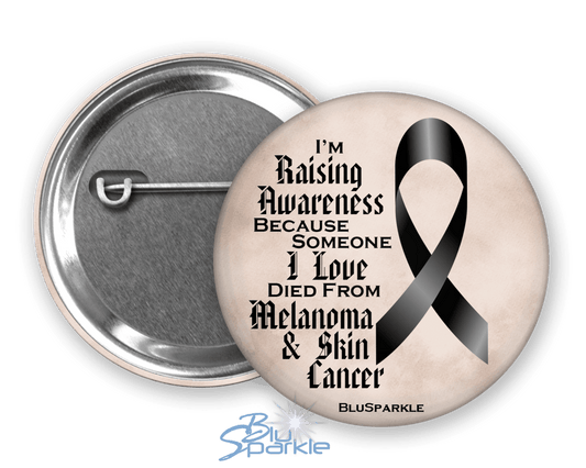 I'm Raising Awareness Because Someone I Love Died From (Has, Survived) Melanoma and Skin Cancer Pinback Button