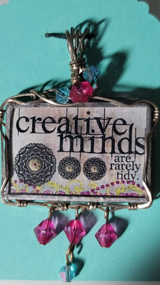 Creative Minds Are Rarely Tidy Wire Wrapped Handmade Stained-Glass Pendant