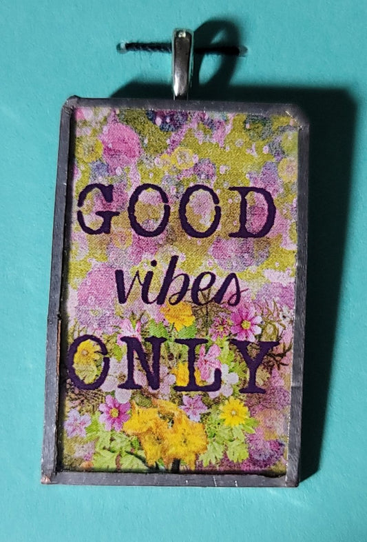 Good Vibes Only Handmade Stained-Glass Pendant