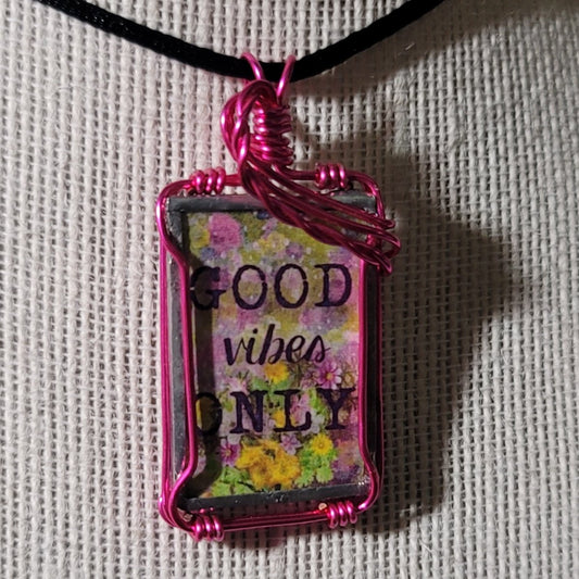 Good Vibes Only Wire Wrapped Handmade Stained-Glass Pendant