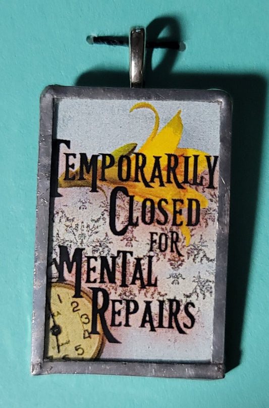 Temporarily Closed for Mental Repairs Handmade Stained-Glass Pendant