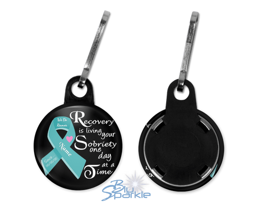 Personalized "Recovery is Living Your Sobriety One Day at a Time" Zipperpulls